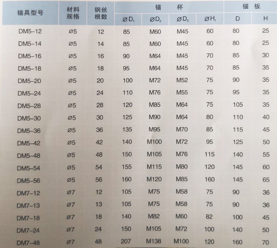 DM型鋼絲束鐓頭錨具系列:錨固標(biāo)準(zhǔn)強(qiáng)度為1470、1570MPa及其以上的? 5、? 7mm高強(qiáng)鋼絲束。主要用于后張法預(yù)應(yīng)力混凝土結(jié)構(gòu)及構(gòu)件中。 錨板用于固定端。