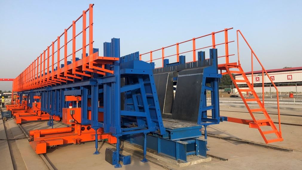 4)底模分為固定式底模及帶活動(dòng)段底模,固定式底模用于采用提梁機(jī)提梁場合,帶活動(dòng)段底模用于移梁機(jī)移梁場合。